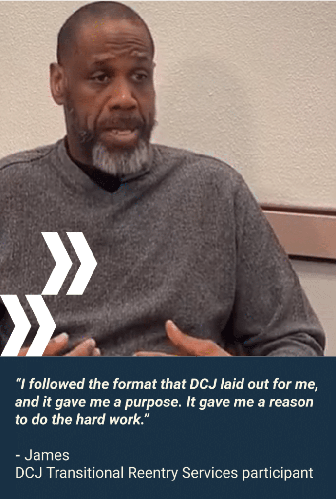 James says DCJ’s reentry services gave him the chance to reclaim his life. “I have money in the bank. I’m connected with my kids again,” he said. “I’m 61, and I’m just now starting to live.”
